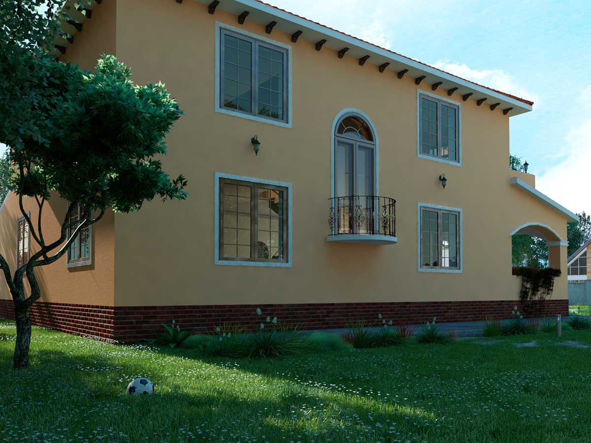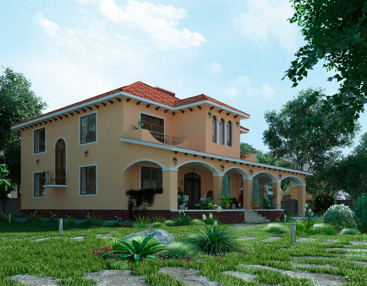 Проект двухэтажного дома «REsv100-2» с навесом и верандой